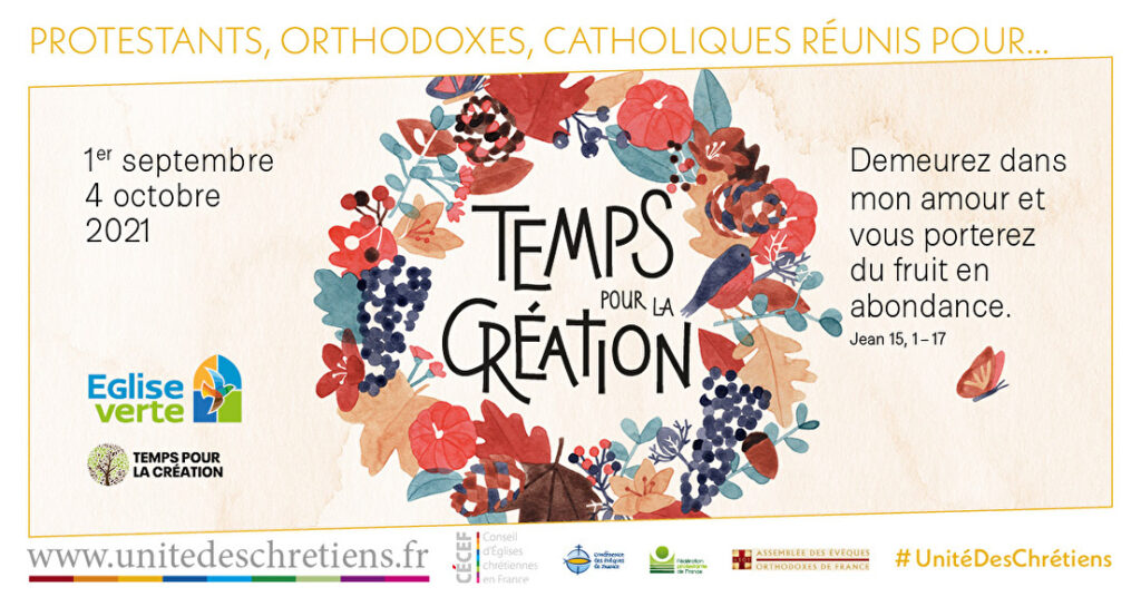 Le Temps pour la Création se déroule comme chaque année du 1er septembre au 4 octobre, le thème pour 2021 est Une maison pour tous ? Renouvellement de l’Oikos de Dieu (la maison de Dieu). Le Temps pour la Création est pensé pour renouveler notre relation avec notre Créateur et avec toute la création en célébrant, en changeant […]