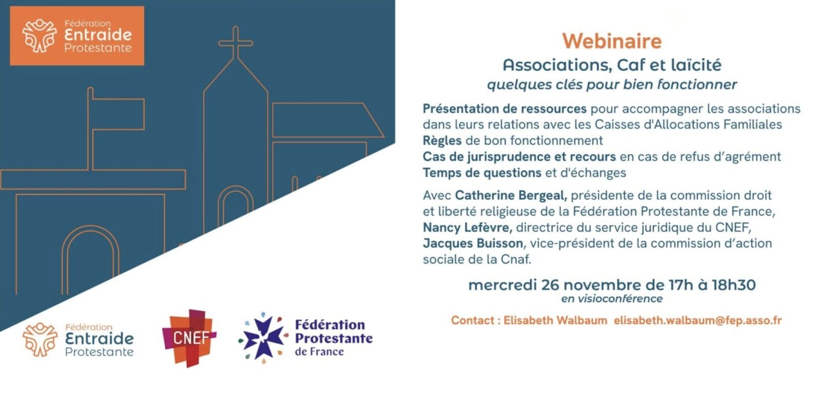 Elle remercie la commission Droits et liberté religieuse de la fédération pour la création de la fiche Comment contester le refus d’aide de la CAF et pour son accompagnement des associations concernées par un refus d’agrément aux bons de vacances par leur caisse d’allocation familiales de rattachement. Nous espérons que les recours déposés par les associations protestantes démontreront dans l’espace public qu’elles proposent des animations engagées et porteuses de sens tout en respectent la charte républicaine.